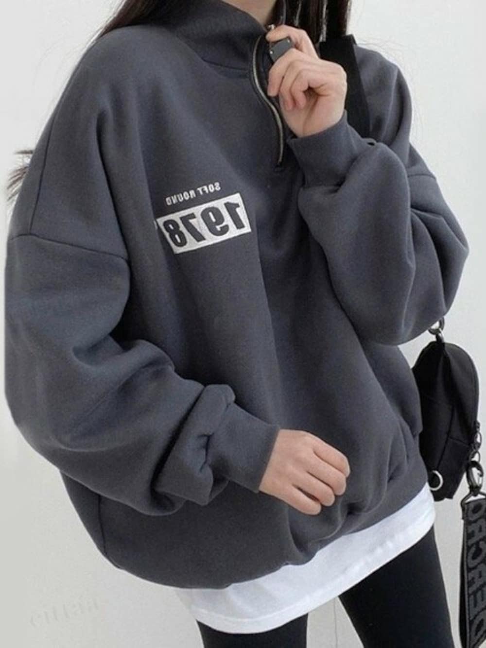 Dalfwinスタッフのスウェット「韓国ファッション1978刺繍ハーフジップ長袖オーバーサイズ裏起毛&起毛なしスウェット」を使ったコーディネート