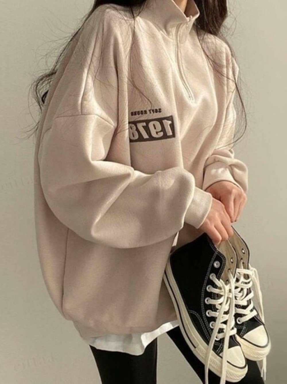 Dalfwinスタッフのスウェット「韓国ファッション1978刺繍ハーフジップ長袖オーバーサイズ裏起毛&起毛なしスウェット」を使ったコーディネート
