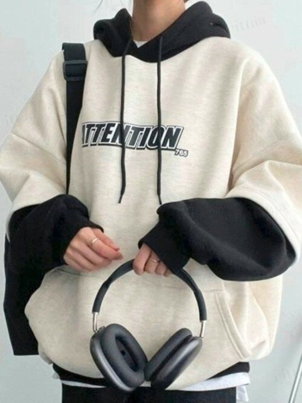 Dalfwinスタッフのパーカー「2023AW 秋冬新作 韓国ファッション パーカー スウェット レディース バイカラーレイヤードフーディー ビッグシルエット オーバーサイズ 男女兼用 ペア ユニセックス」を使ったコーディネート