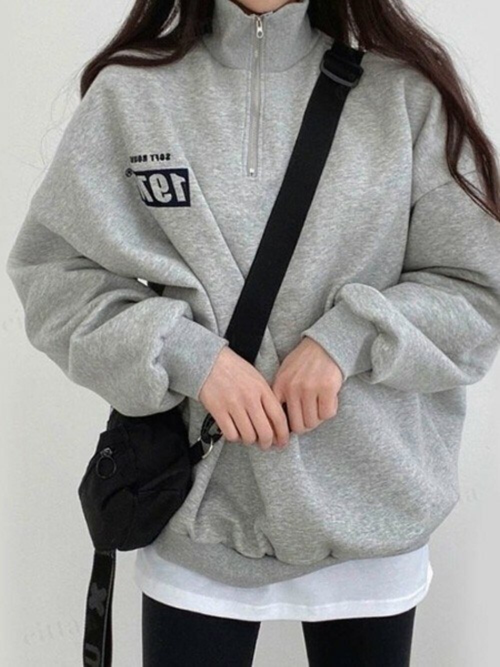 Dalfwinスタッフのスウェット「韓国ファッション1978刺繍ハーフジップ長袖オーバーサイズ裏起毛&起毛なしスウェット」を使ったコーディネート