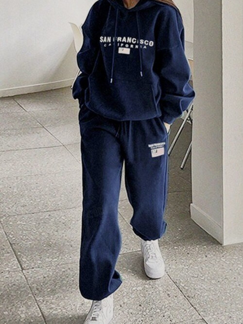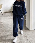 Dalfwinスタッフのルームウェア/パジャマ「SANFRANCISCO刺繍ロゴ上下スウェットセットアップ レディース ルームウェアパーカー」を使ったコーディネート