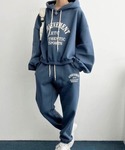 フーディー×ジョガーパンツの組み合わせがスポーティーで可愛いセットアップ💙 トップスとパンツに入った英字ロゴがポイント✨ それぞれ単品でも使えるのでお手持ちのアイテムと着回しが楽しめます💯 トップスの裾を少し絞ったボリュームのあるシルエットも可愛い!😆❤️ そのまま着るだけでコーデが決まるので忙しい朝にもオススメ☀️ Tシャツやハイネックをレイヤードしても🙆♀️ あったか裏起毛タイプ🔥 年末年始の移動の多い日にも大活躍です👌✨