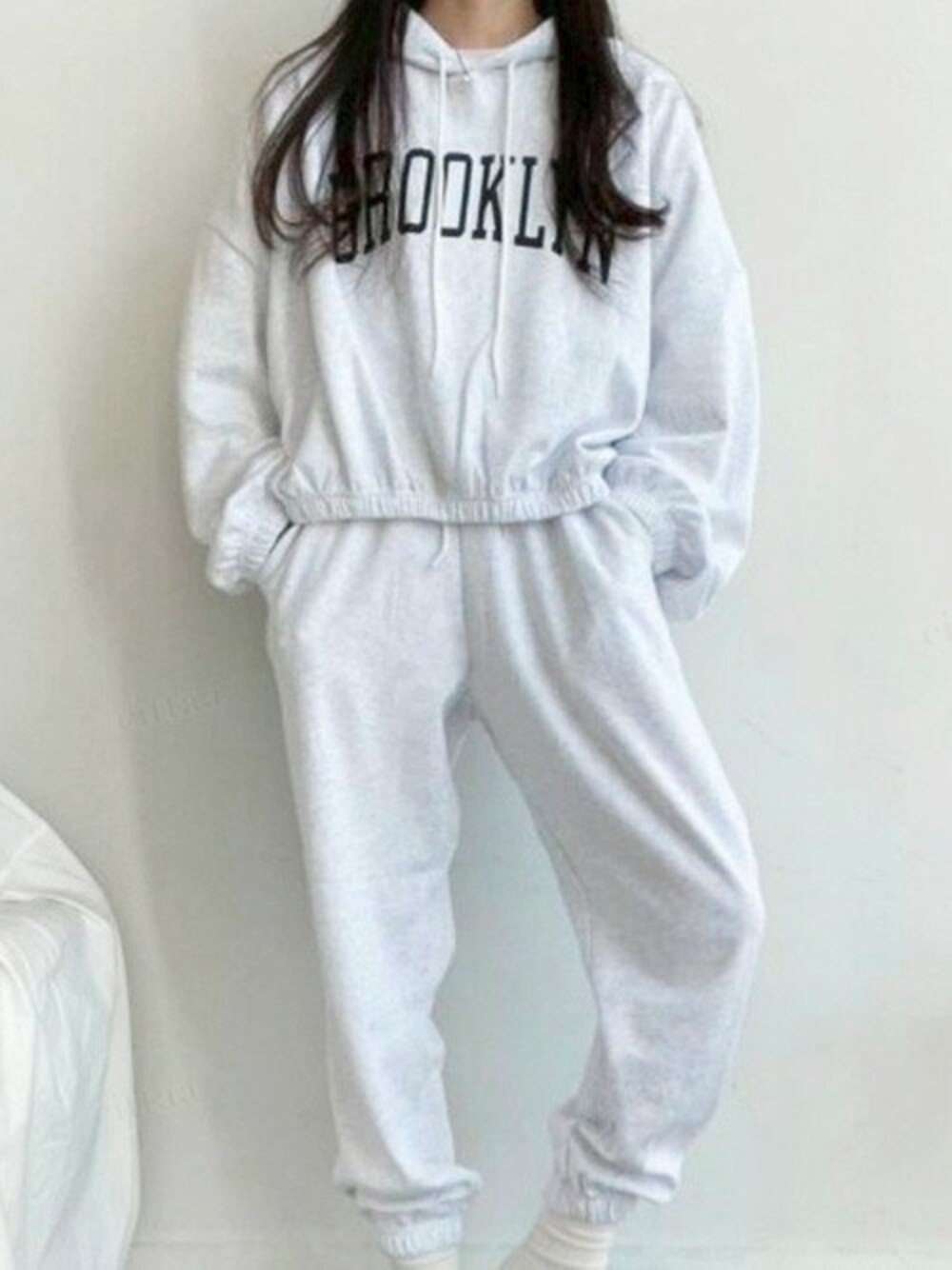 Dalfwinスタッフのルームウェア/パジャマ「韓国ファッションBROOKLYNカレッジロゴスウェットセットアップパーカールームウェア」を使ったコーディネート