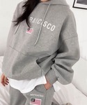 Dalfwinスタッフのルームウェア/パジャマ「SANFRANCISCO刺繍ロゴ上下スウェットセットアップ レディース ルームウェアパーカー」を使ったコーディネート