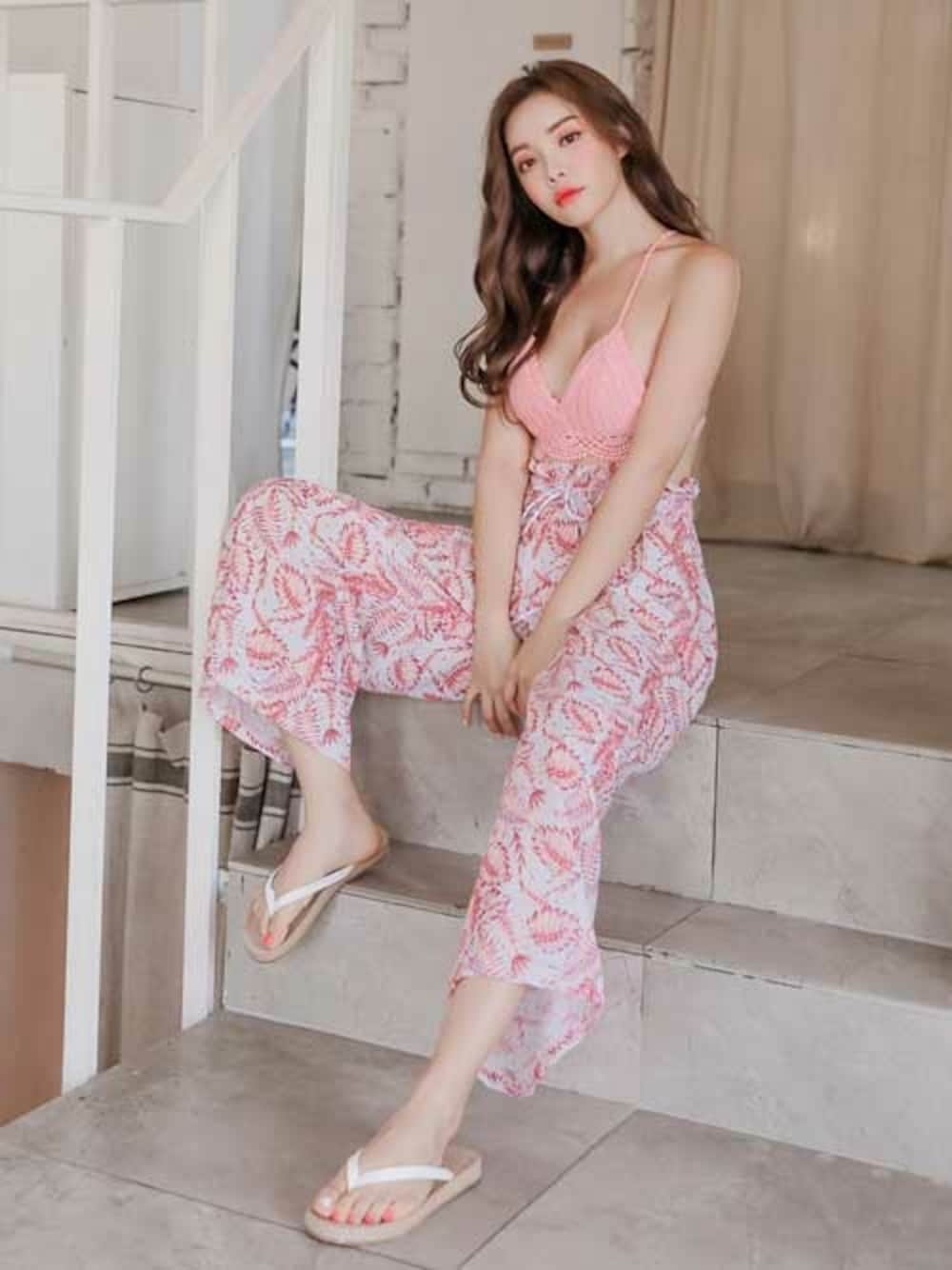 JINの水着「クロシェトライアングルビキニワイドパンツ3点セット」を使ったコーディネート