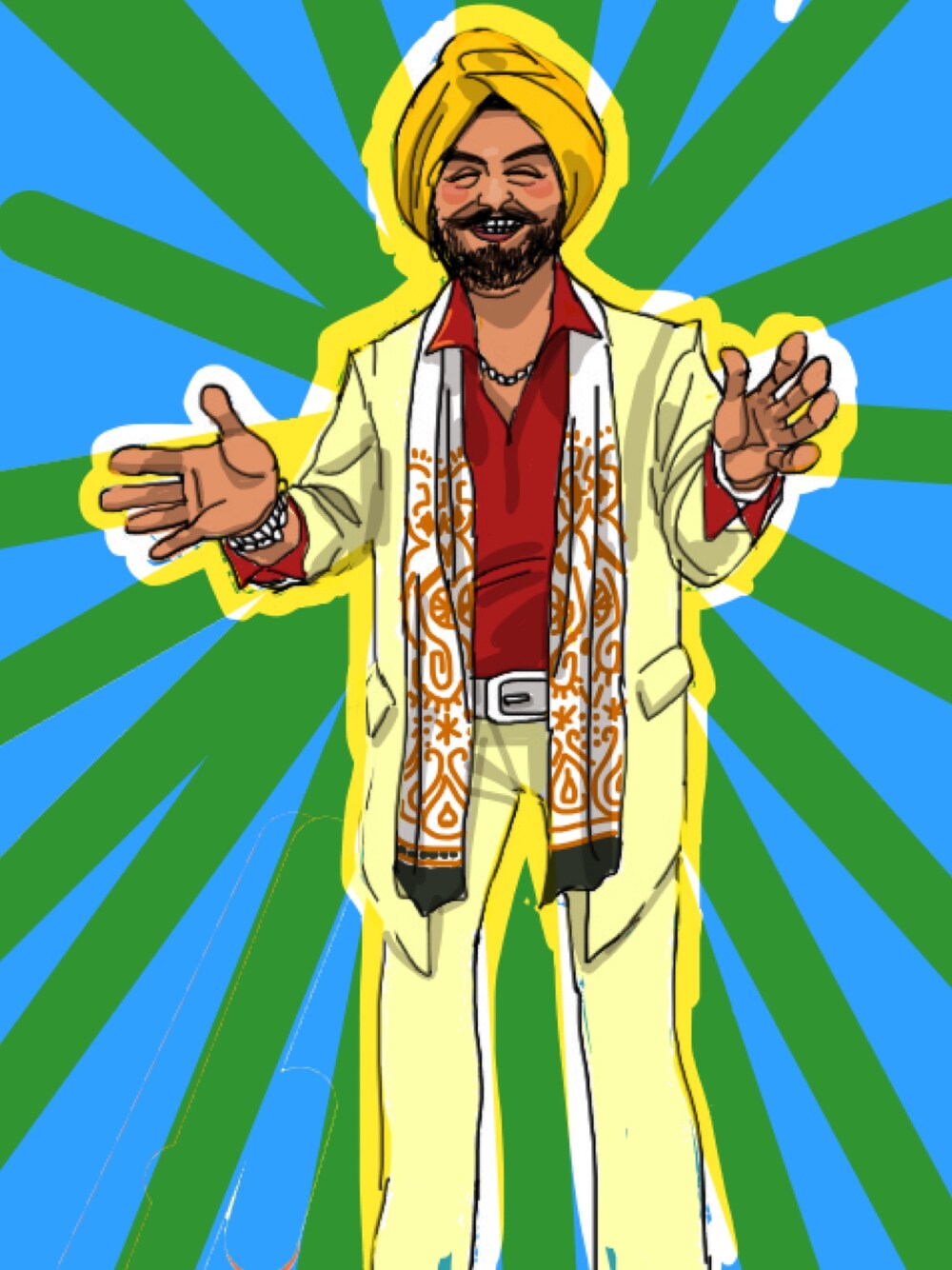 絵はお久しぶりですね。 今回はカラーです。 インド人はターバンを巻いているイメージですよね。iPhoneの絵文字もターバン巻いてますし。👳🏽 そのターバンインド人のモデルとなっているのはシク教という宗教を信仰している方です。 色の意味も聞いたことがあったような気がしたんですが覚えてないです。住みません。 スカーフの柄とか、エキゾチックな感じがめっちゃ大好きです。象とかさぁ。 ザ!インド!みたいな色遣いとかも本当に魅力的です。 いつかインド行ってみたいな〜 まぁインドでなくてもいーんだけど。 世界観が180度変わりそう。