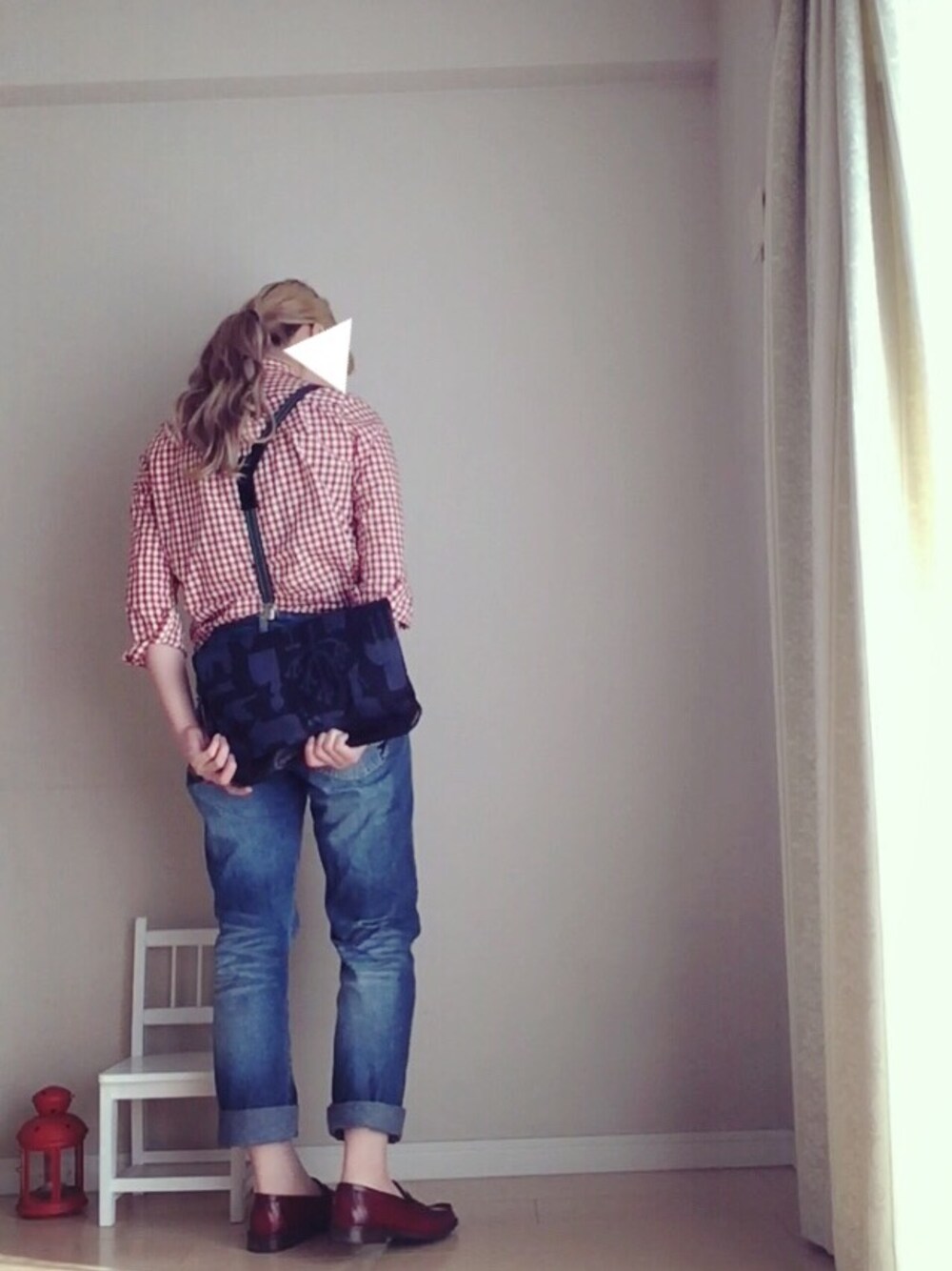 先日のコーディネートを 小物で雰囲気チェンジをしました! 出来てるか出来てないかは別です! ベルトの代わりにサスペンダー そしてクラッチを持ちました。 ほんの少しの変化ですが なんとなく雰囲気チェンジしてるかな?