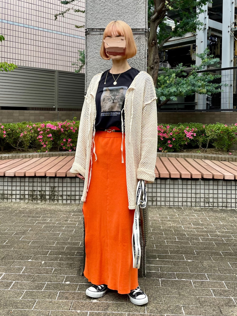 いつもご覧いただきありがとうございます😄✨ どうもDamiです😸 ♡+フォローいつもありがとうございます😊💕 myuuさん、MR.Mさん、kyoさん、たっくんさん、前回のコーデを素敵なフォルダーにインして頂き、ありがとうございます🙇♀️❤️ 本日は今季トレンドのメッシュアイテムを使ったコーデ😃 シンプルにTシャツ×カラースカートとの組み合わせ🧡 ロゴTなので開けたバージョンをメインに🤗 見ていただきありがとうございます😄✨ 良かったら♡+フォローよろしくお願いします☺️💕 Instagramにも是非遊びに来て下さい🌟
