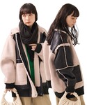 まちるだ のムートンコート「リバーシブルフェイクムートンボアブルゾン」を使ったコーディネート