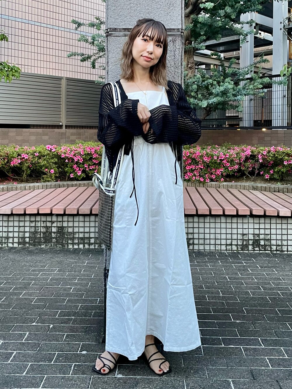 まちるだ のワンピース「サイドリボンカットアウトキャミワンピース」を使ったコーディネート