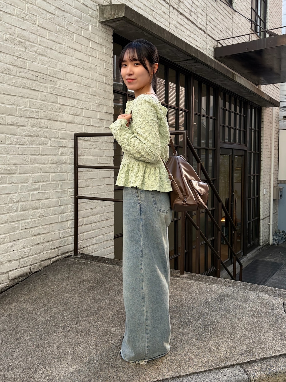 だみちゃん🦥 (mystic)のシャツ/ブラウス「【3色展開/羽織りとしても◎】シャーリングペプラム TOPS」を使ったコーディネート