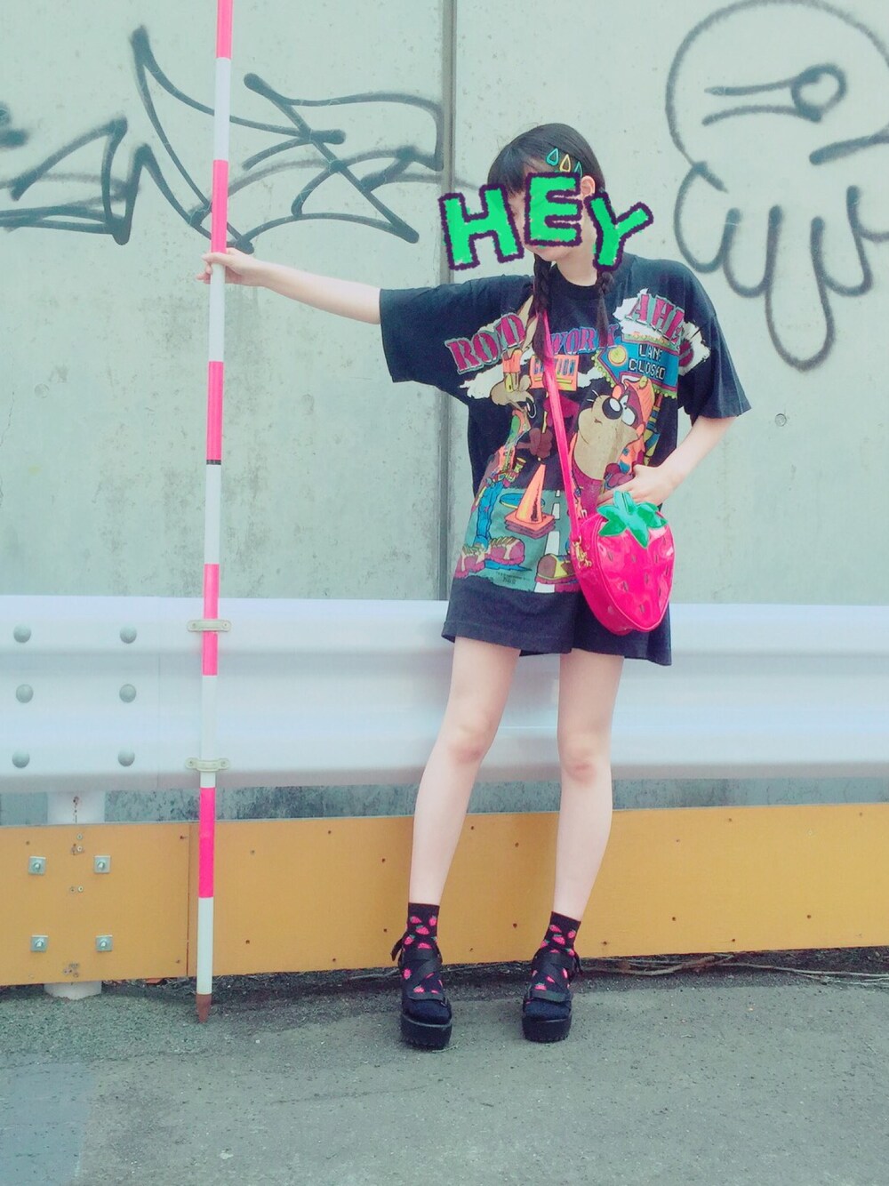 ALL WEGO コーデ😉 BIGティシャツはだいすきな古着ッ👌🏾 今年はやりのショルダーバッグがポイント💗💗