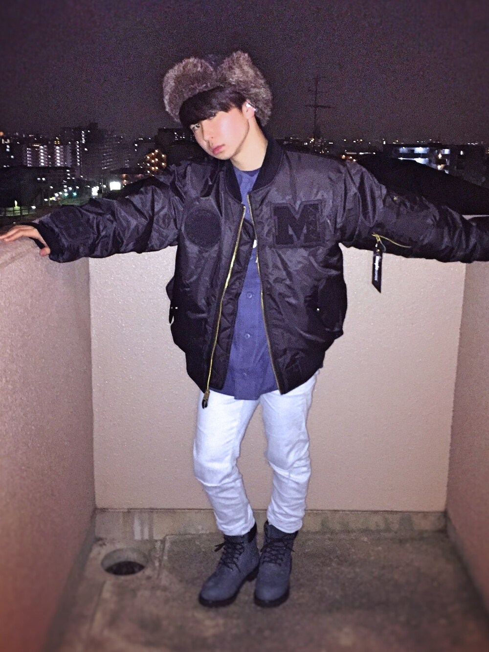 K€Nのマウンテンパーカー「MA-1 black 」を使ったコーディネート