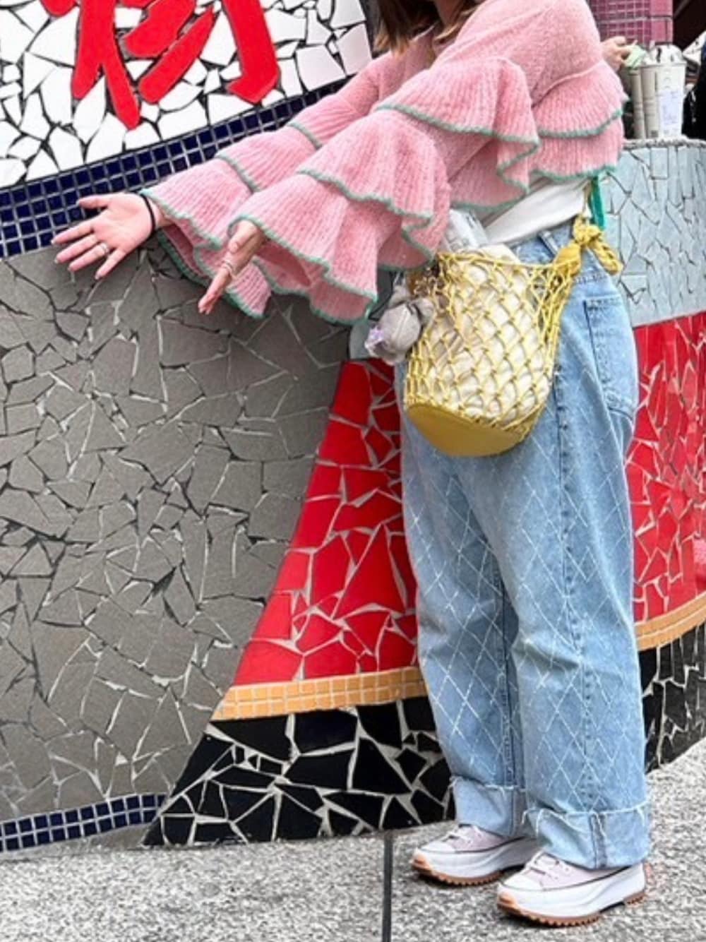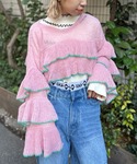 ssakiixxxのニット/セーター「【HELLO.SANFRANCISCO/ハローサンフランシスコ】シアー配色フリルレースアップニット」を使ったコーディネート