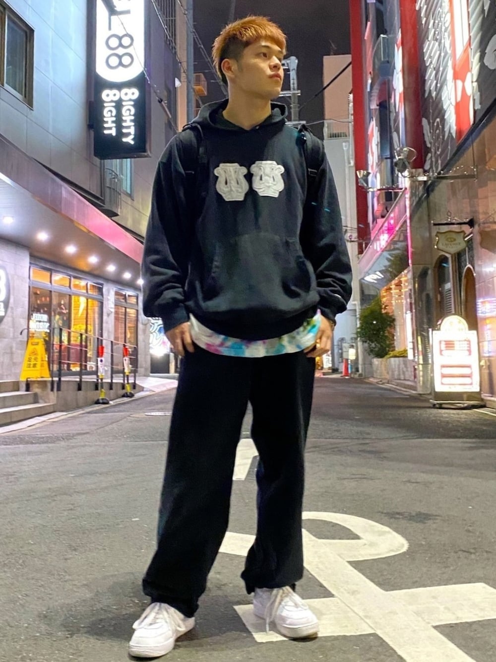 『ブラックストリートコーデ』 あけましておめでとうございます⛩ 今年も張り切って投稿していきますのでよろしくお願いいたします🙇♂️ 今回はダボっとストリートコーデで決めました! トップスとパンツの色を黒で合わせ、オーバーサイズシルエットにair forceを合わせています! ポイントはスウェットからチョろっとシャツを出す事です😎 皆さんも是非🙇♂️