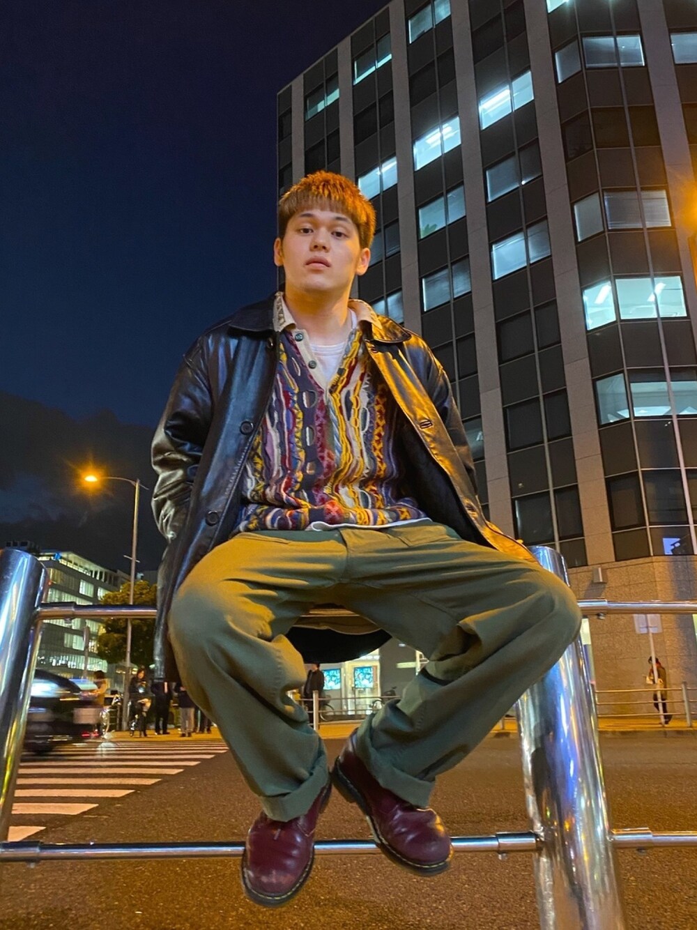 『coogi×レザーの古着カジュアル』 こんにちは😎 今日は古着屋店員らしいコーデです! 柄のクージーニットを中心に、レザージャケットを合わせ、「男の古着」って感じで決めました!! 黒のレザージャケットは何にでも合う、優れものです😎 皆さんも是非🙇♂️
