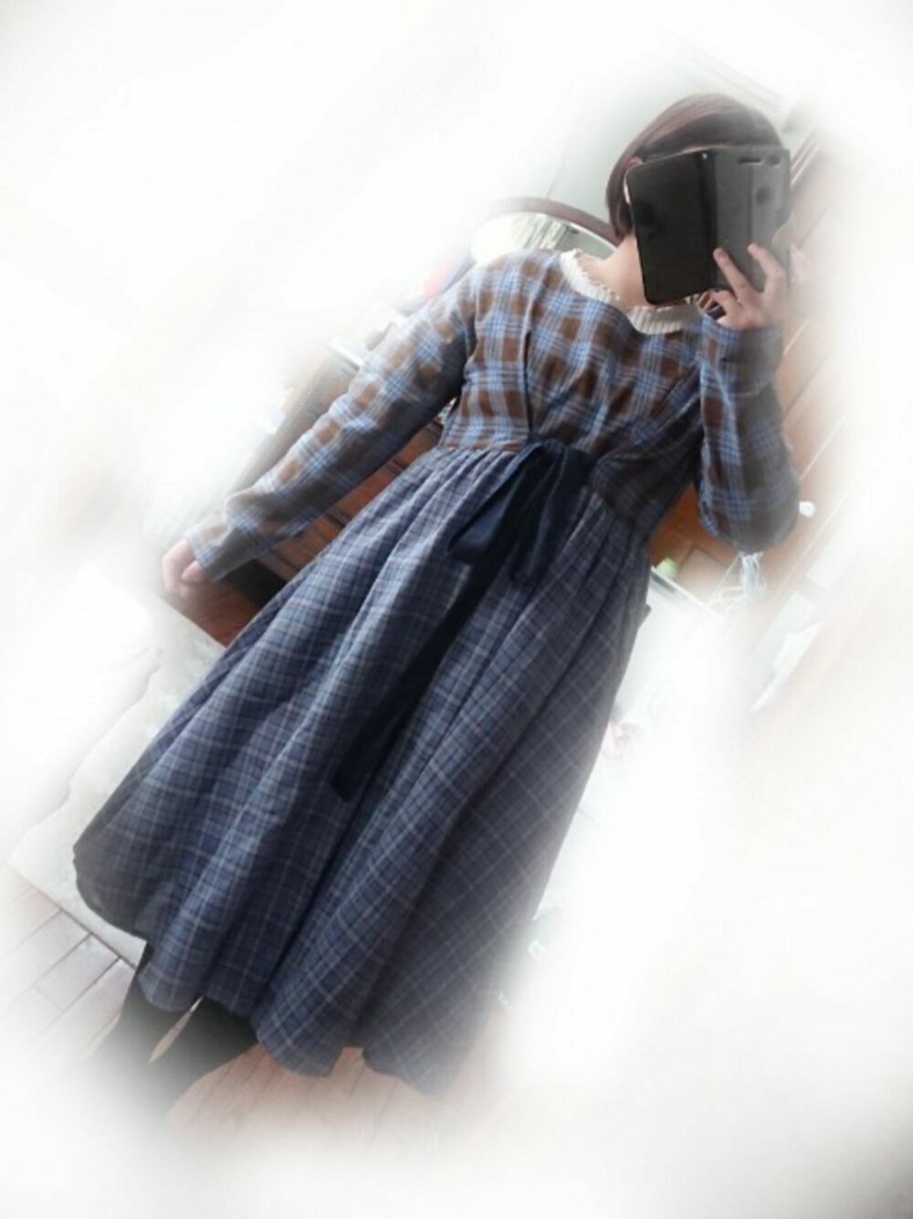違を結ぶワンピース ブルー 素材が薄すぎないので、中にカットソー等を合わせれば冬でも着れそう。 絶妙な位置の切り替えとリボン、スカート部分の揺れ感のシルエットが好きです。