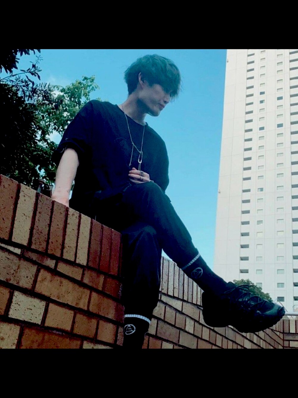 _ 久々の投稿〜🍒 オールブラックKURO×KURO カーゴパンツで外して異世界感を出してみました! 見えないですがベルトもデザインこだわってます🙌 最近黒コーデしてなかったので新鮮かな✨ _