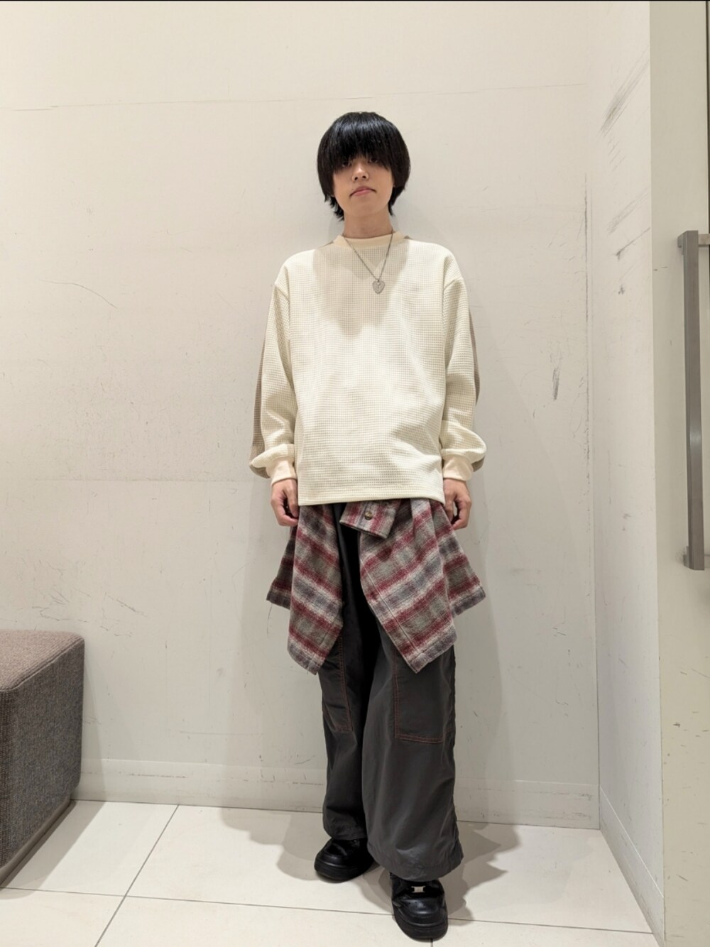 ご覧いただきありがとうございます! SENSE OF PLEASEのカットソーとシャツを使ったコーデです。暖色カジュアルでまとめています。 このチェックシャツは羽織っても、もちろんかわいいですが、最近また流行っている腰巻にも便利な1着です。