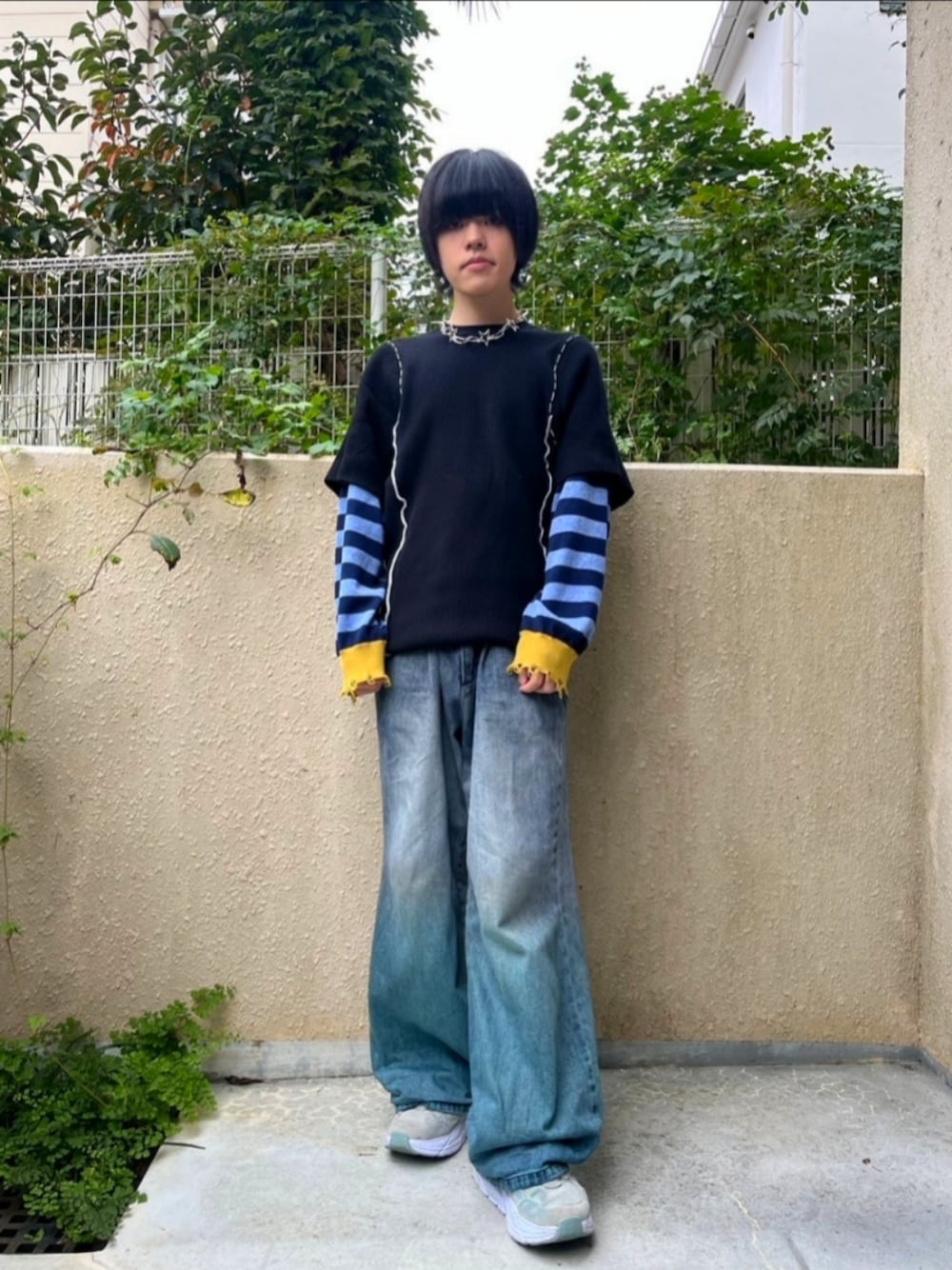 ご覧いただきありがとうございます! sodukのトップス×HAREのグラデーションデニムのコーデです。トップスはレイヤードしているように見えますがこれで一体となっています。かわいいですが、思った以上に丈長めで、やはりレディースらしいシルエットのトップスです。 jiedaのアクセサリーはキーチェーンで使うことが多いですが、ネックレスとして使ってもかわいいです。