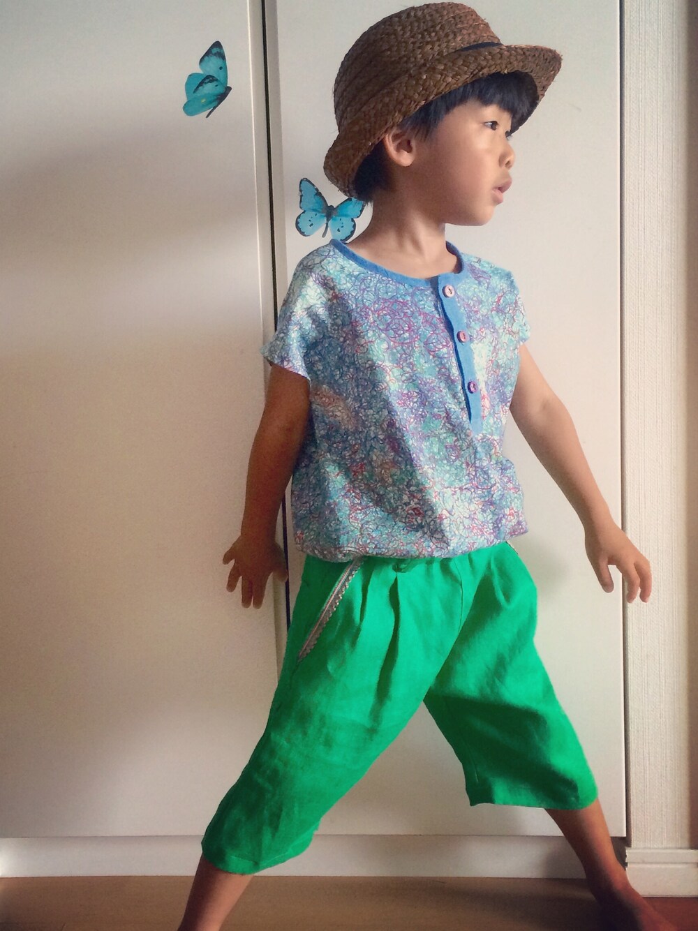フレンチブラウスとカラーリネンタックパンツをハンドメイド。