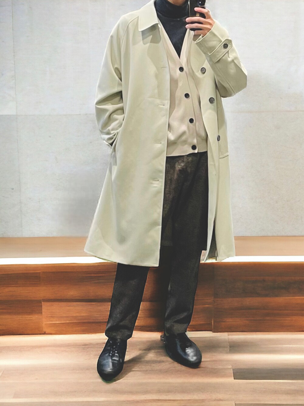けるんのステンカラーコートを使ったコーディネート