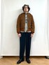 珍しいブラウン色のテストサンプルのL-2を、コーディネートのポイントとして、スウェット、レッドウイングとアメカジアイテムを、大きめハンチングと、綺麗めキャバジンのトラウザーと同系色のバンダナで合わし、全てジャストサイズにする事で、キレイメミリタリーで女子ウケも考えたコーデです。結果的に。