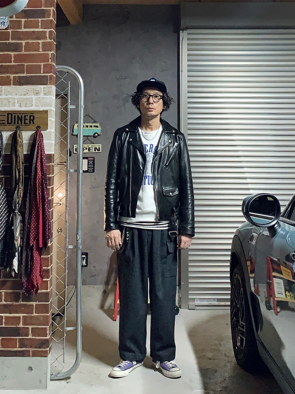 h.s.k.のライダースジャケット「beautiful people vintage leather THE/ a riders jacket 1000402421」を使ったコーディネート