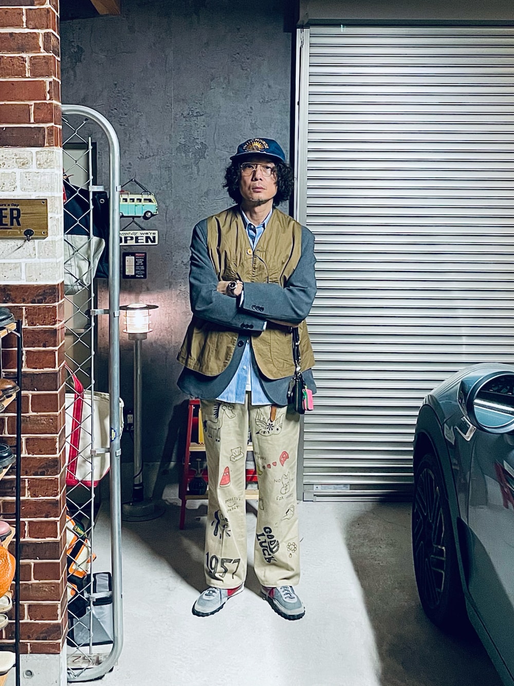 h.s.k.のキャップ「<HELLO SUNRISE> ウォッシュド ロゴ 6パネル キャップ」を使ったコーディネート