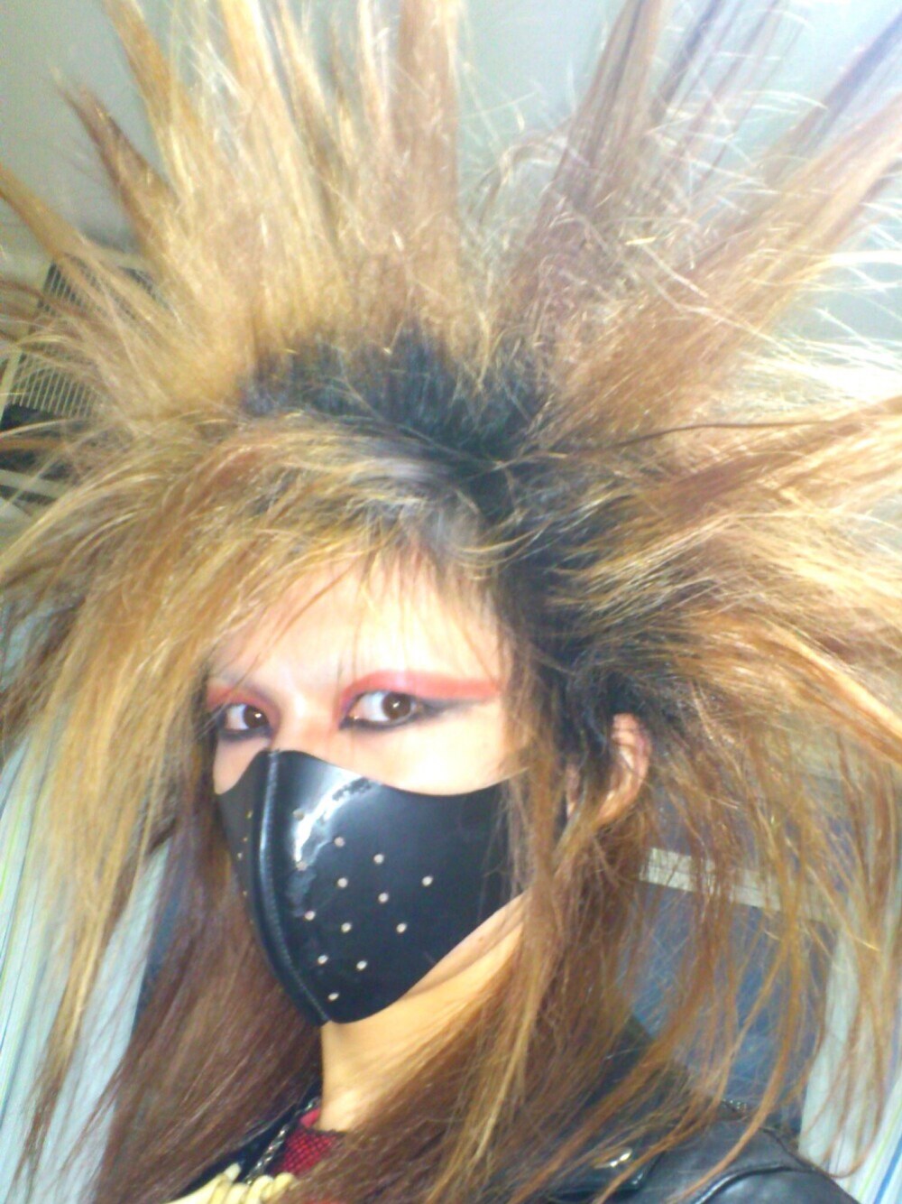 XJAPANにいそうなイメージ。 髪はダイエースプレーで逆毛。 メイクはファンデに濃いめのシャドー
