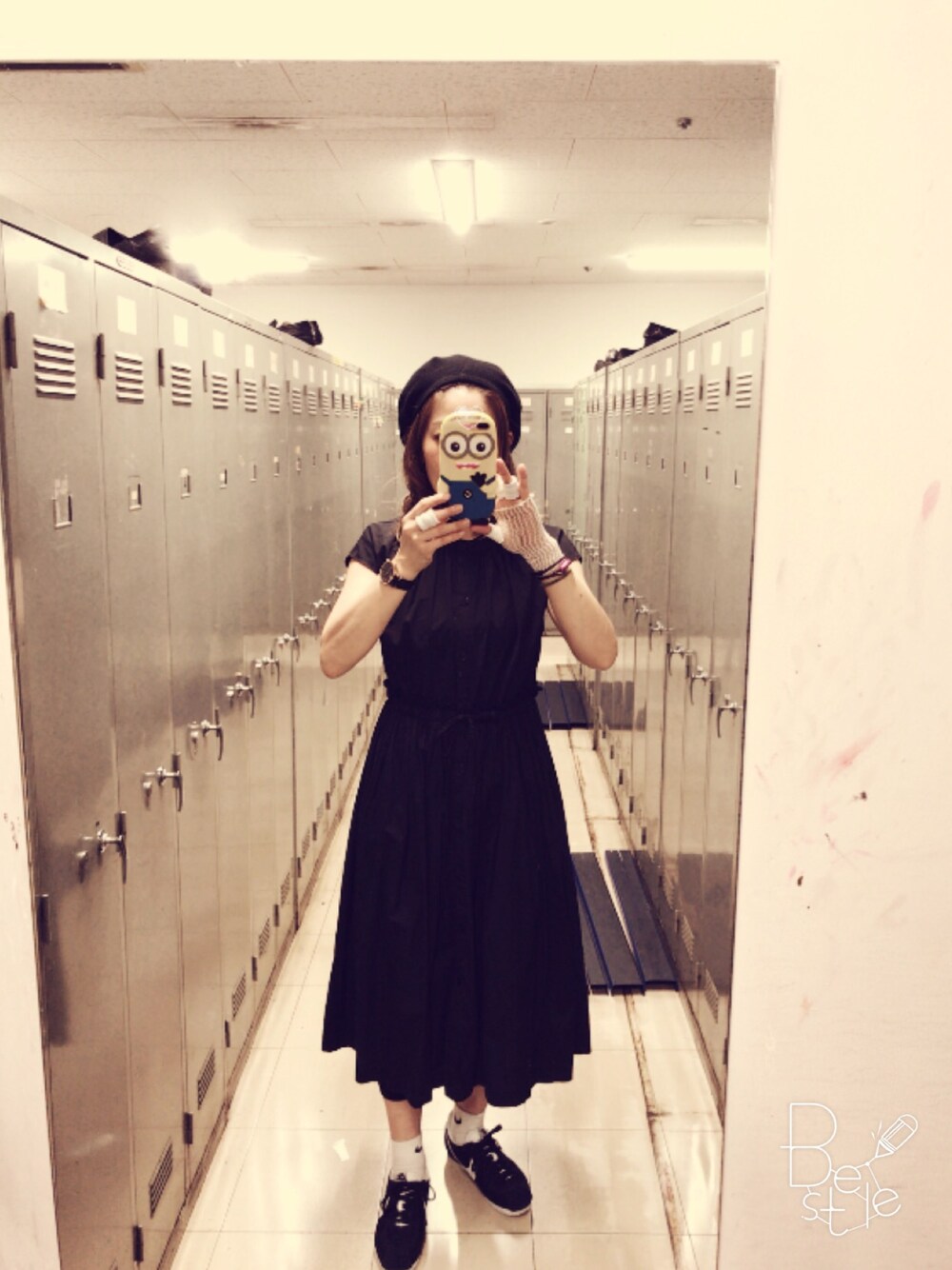 フレンチスリーブのシンプル黒ワンピ〜ス 今年は全部外して着るのも流行ってるみたい(*•᎑•*) 今日の気温だと、ちょっと涼しかったㅋㅋ