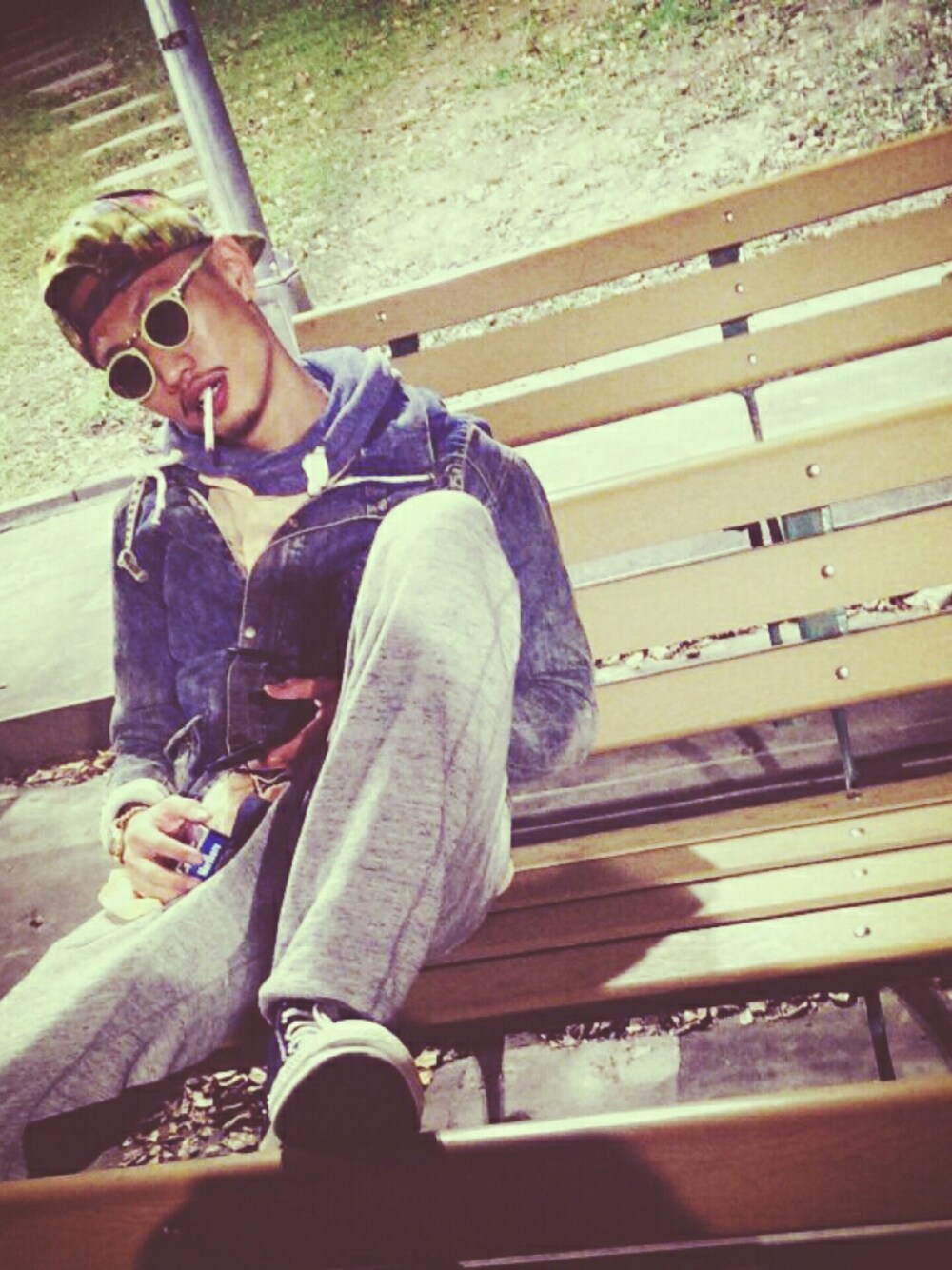グリーン系のキャップを着用したメンズの春コーディネートの1枚目の写真