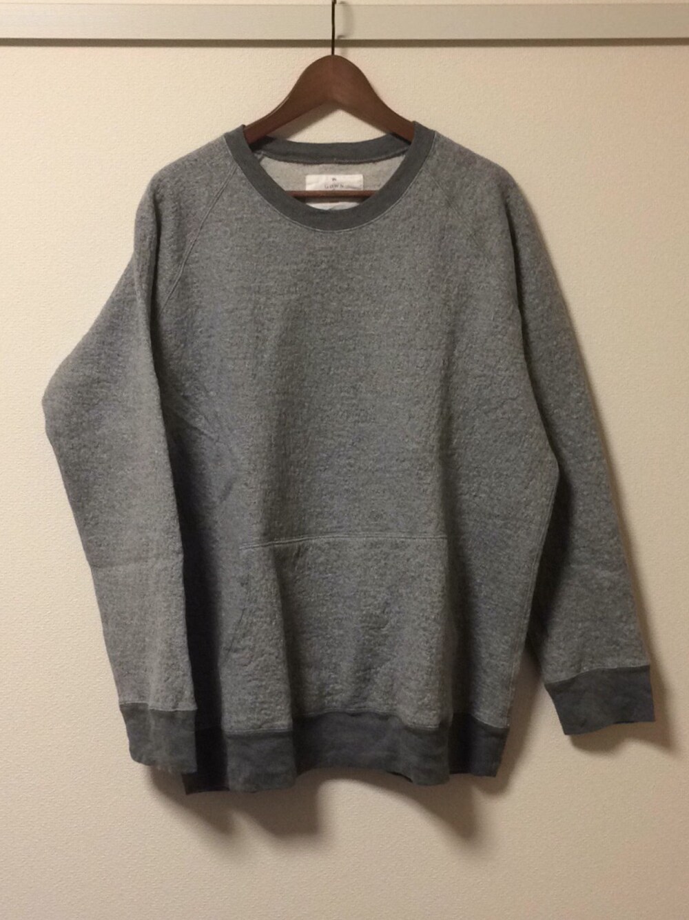 AUGUSTE-PRESENTATIONの展開するもう一つのライン『GOWN & FOUNDATION』初めて購入しましたが、このクルーネックでカンガルーポケット。本当にツボ。ウネ感あるコットンウールの素材も◎。