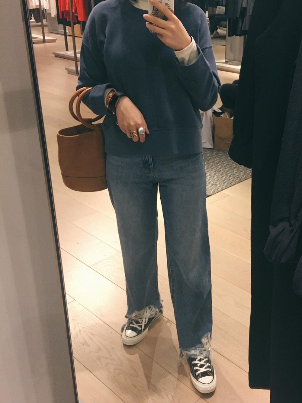 thisisaluuのデニムパンツ「DL 1961 Hepburn High-Rise Wide-Leg Jeans with Shredded Hem, Slate」を使ったコーディネート