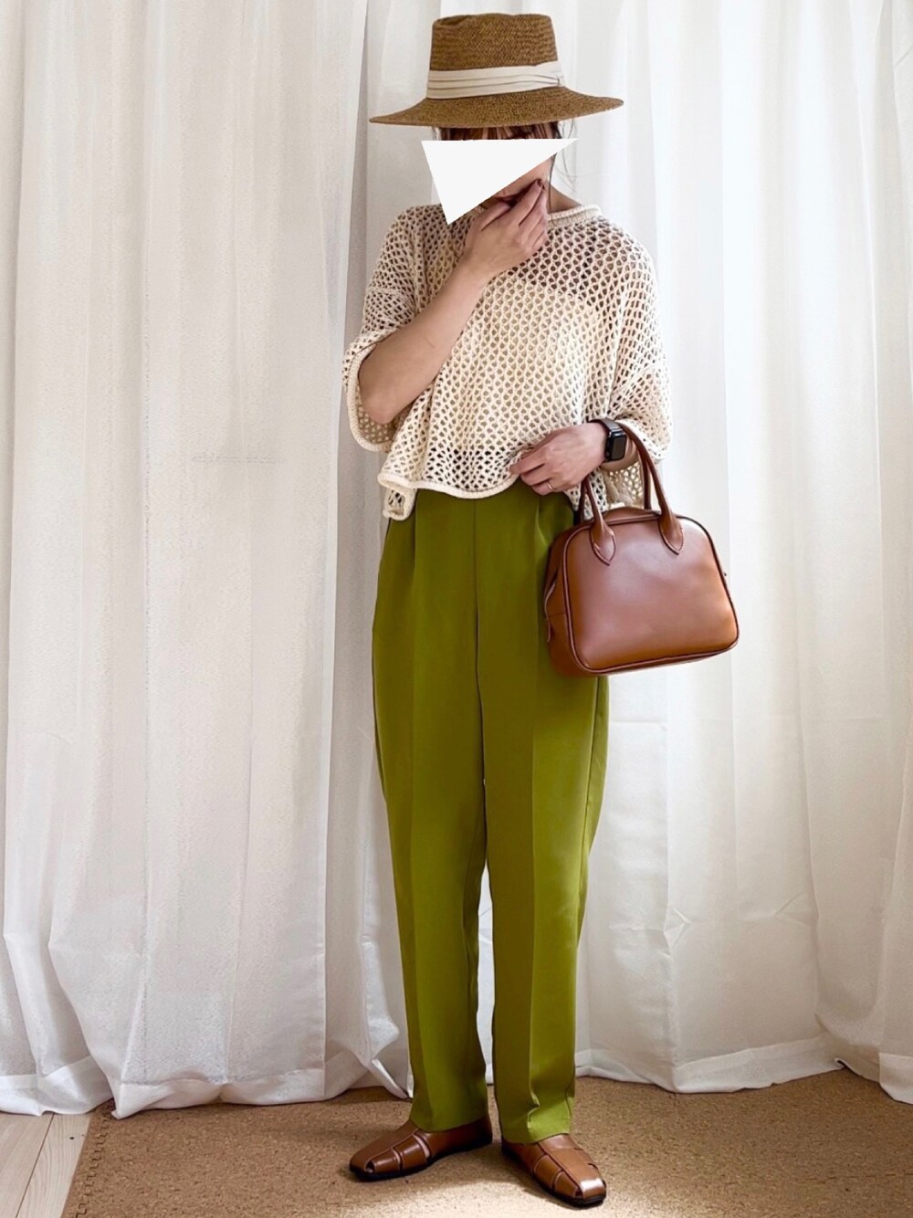 𝚍𝚊𝚛𝚊.のニット/セーター「透かし編み クロップド丈 メッシュニット」を使ったコーディネート