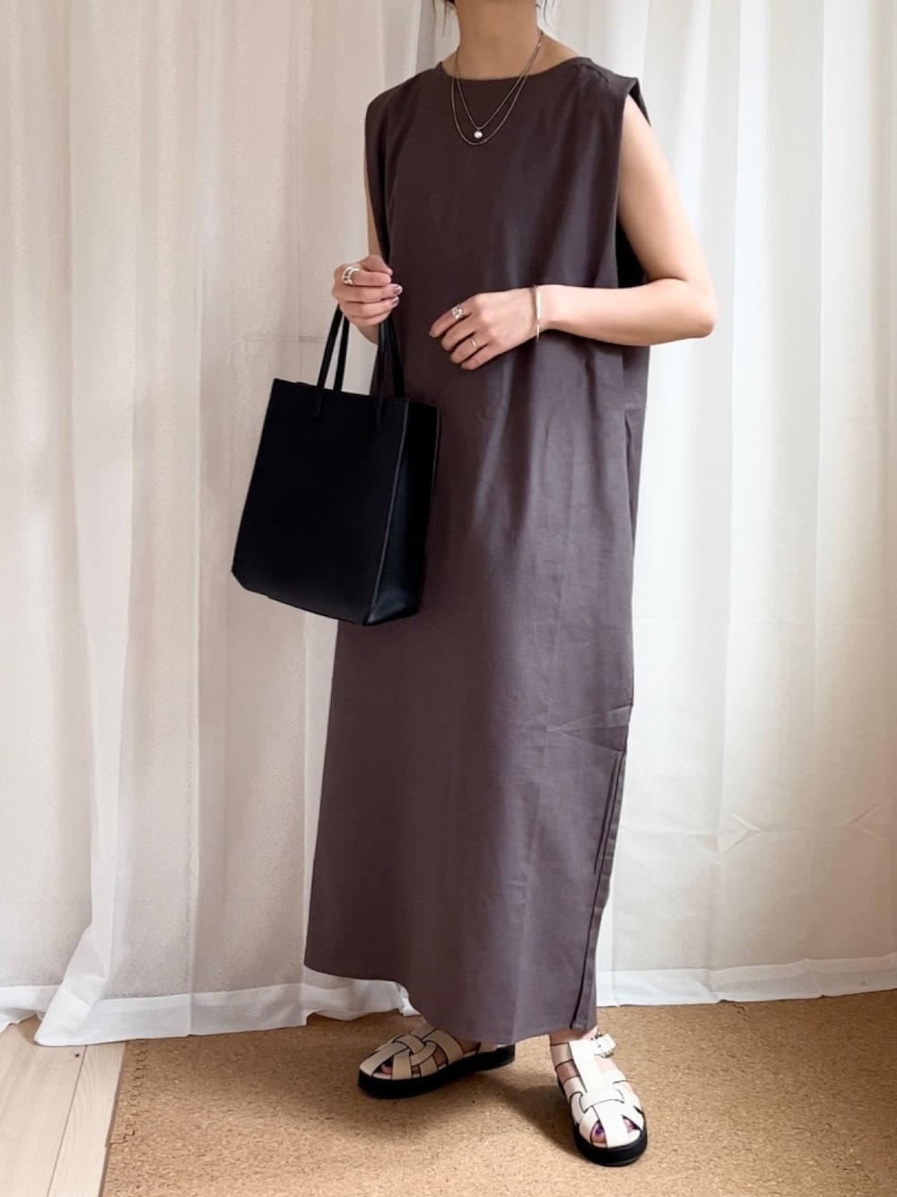 𝚍𝚊𝚛𝚊.のワンピース「[高身長さんサイズ有]麻混Iラインワンピース」を使ったコーディネート