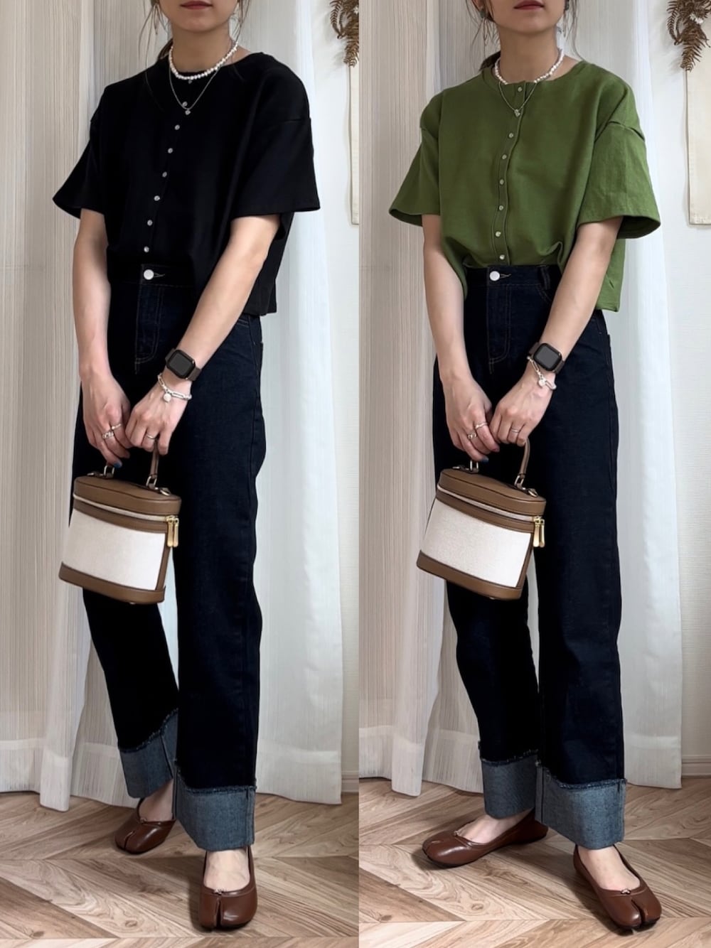 ✎*。____ . 上下𝘵𝘪𝘱𝘵𝘰𝘱 さんコーデ🧏🏻♀️🌼 王道ブラックとコーデのポイントになるグリーンの色違いでGETしたスナップボタン半袖カーディガン♡しっかりとした生地感と二の腕をカバーしてくれる袖丈が◎ そして3wayの着回し万能アイテム🫶🏻 ショート丈だからどんなボトムスとも合わせやすくて、ノースリーブやキャミワンピなどなどさっとは羽織れちゃいます🫰🏻 合わせたデニムパンツはビックリするくらい細見え、脚長効果ありでした🙈✧︎163cm標準体型でMサイズジャストです! カーディガンは1000円OFFクーポン出ています♡ꉂꉂ📣 よかったらチェックしてみてくださいね🕺🎶 見ていただきありがとうございました⺣̤̬♥ _____________ 𓈒 #pr 𝙸𝚗𝚜𝚝𝚊𝚐𝚛𝚊𝚖: 𝚍𝚊𝚛𝚊___𝚠𝚎𝚊𝚛 ¨✈ こちらもよろしくお願いします🐨♡