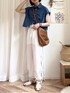 𝚍𝚊𝚛𝚊.のシャツ/ブラウス「ダンガリーデニム フレンチスリーブクロップドシャツ」を使ったコーディネート