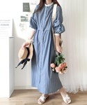 𝚍𝚊𝚛𝚊.のワンピース「【mily bilet】1枚で主役級。マルチストライプクレリックシャツワンピース」を使ったコーディネート