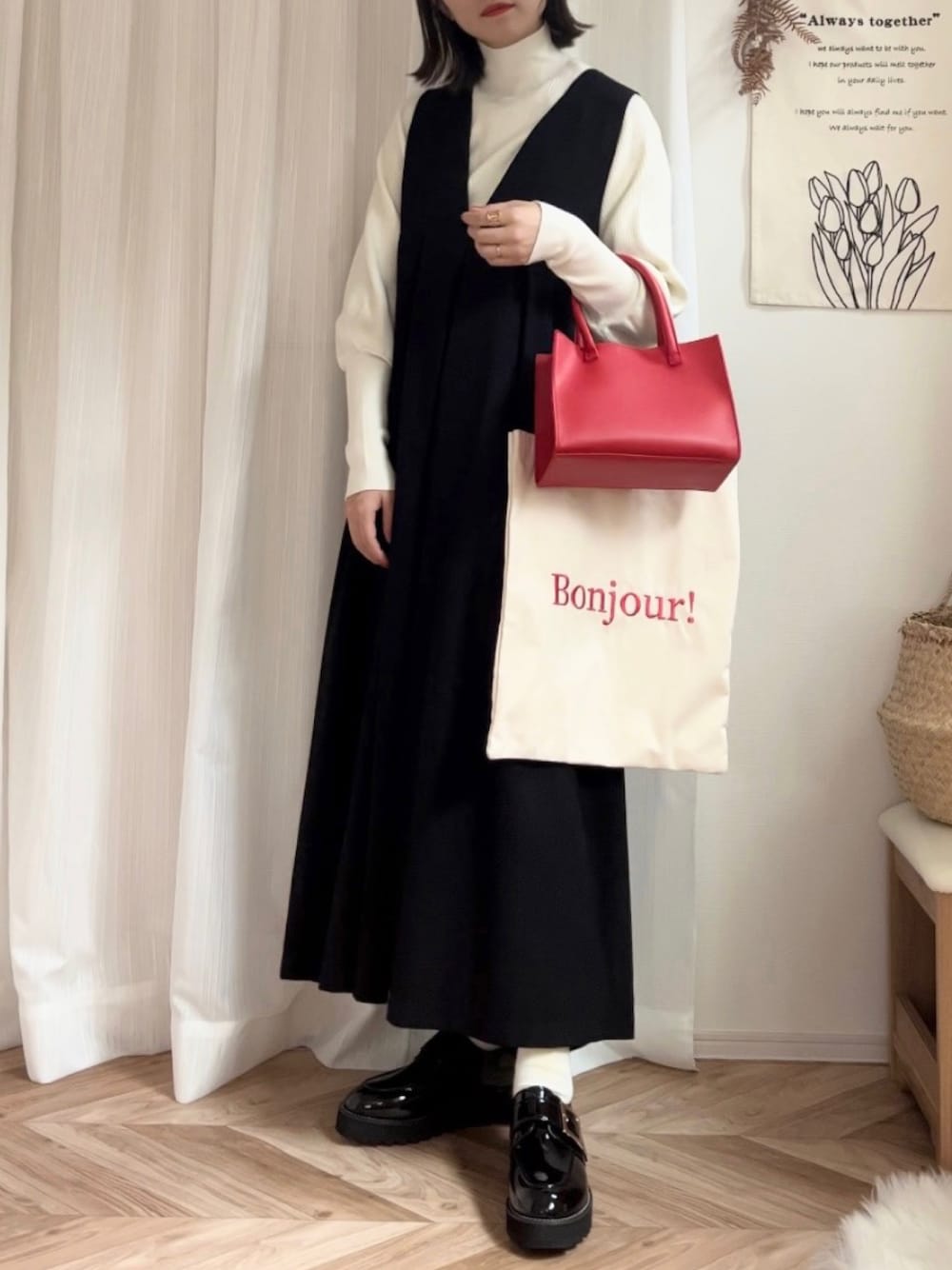 ✎*。____ 2023.9.26 モノトーンに赤🐼🍎 シンプルなコーデのときは存在感のある靴が🙆🏻♀️✧︎ ◾︎ 𝘤𝘰𝘤𝘢(𝘈𝘕𝘋𝘌𝘟 𝘴𝘩𝘰𝘦𝘴 𝘱𝘳𝘰𝘥𝘶𝘤𝘵) └ ワンベルト 厚底バックルベルトローファー 1足あると重宝する¨厚底シューズ¨ バックルが付いたベルトには、隠しゴムが入っているので脱ぎ履きも簡単♪ また、重ために見た目に反して軽量なのも嬉しいポイント🫶🏻 ▷ぜひチェックしてみてくださいね✍︎ ◾︎ 𝘵𝘪𝘱𝘵𝘰𝘱 └【ロングリブハイネックプルオーバー】 お袖のデザインが可愛いモテニット♡ メインでもインナーにしても🙆🏻♀️ 見ていただきありがとうございました⺣̤̬♥ _____________ . #PR 𝙸𝚗𝚜𝚝𝚊𝚐𝚛𝚊𝚖: 𝚍𝚊𝚛𝚊___𝚠𝚎𝚊𝚛 ¨✈ こちらもよろしくお願いします🐨♡