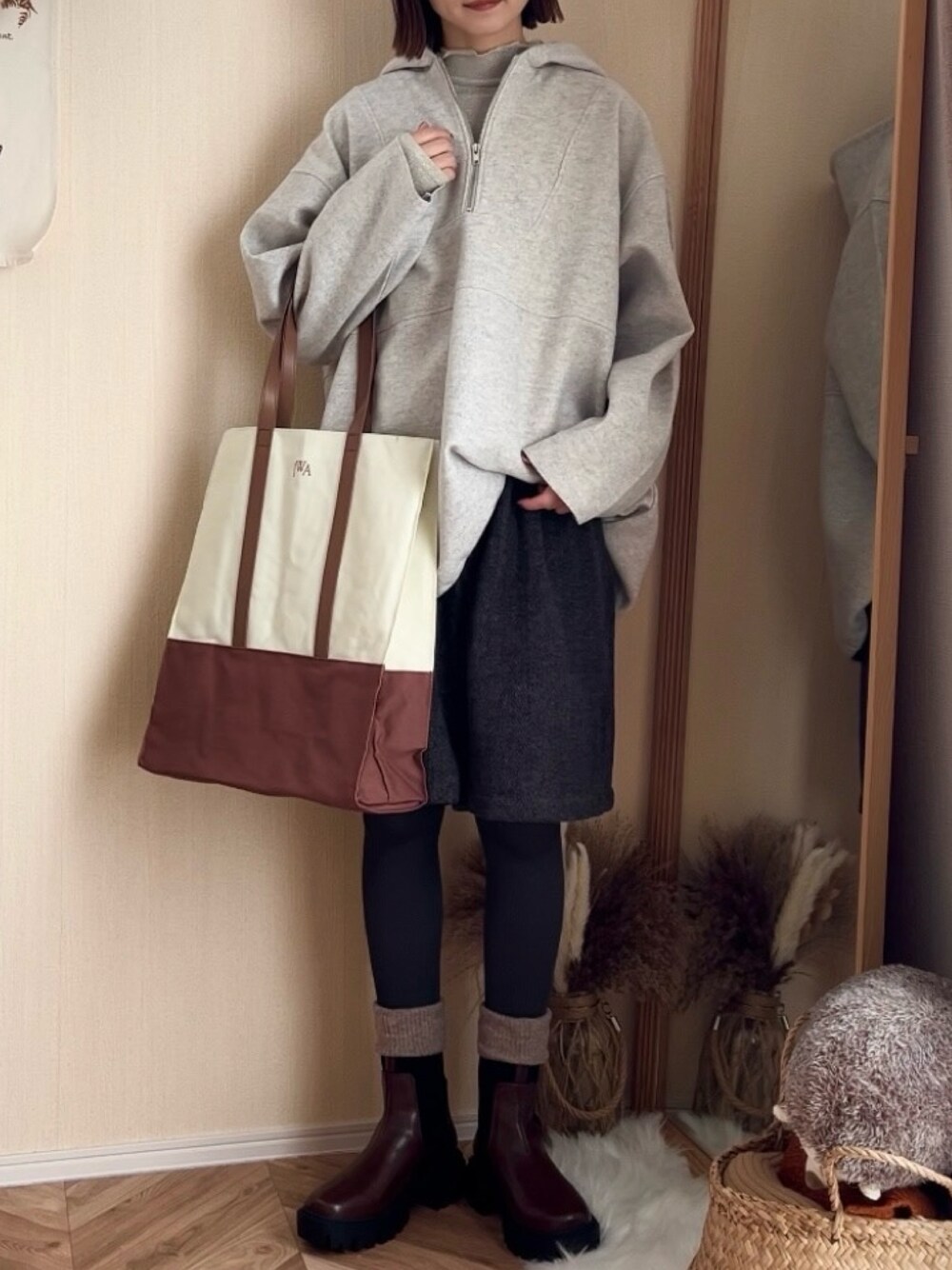 𝚍𝚊𝚛𝚊.のパーカー「【ライン入り登場】メルトンハーフジップBIGパーカー」を使ったコーディネート