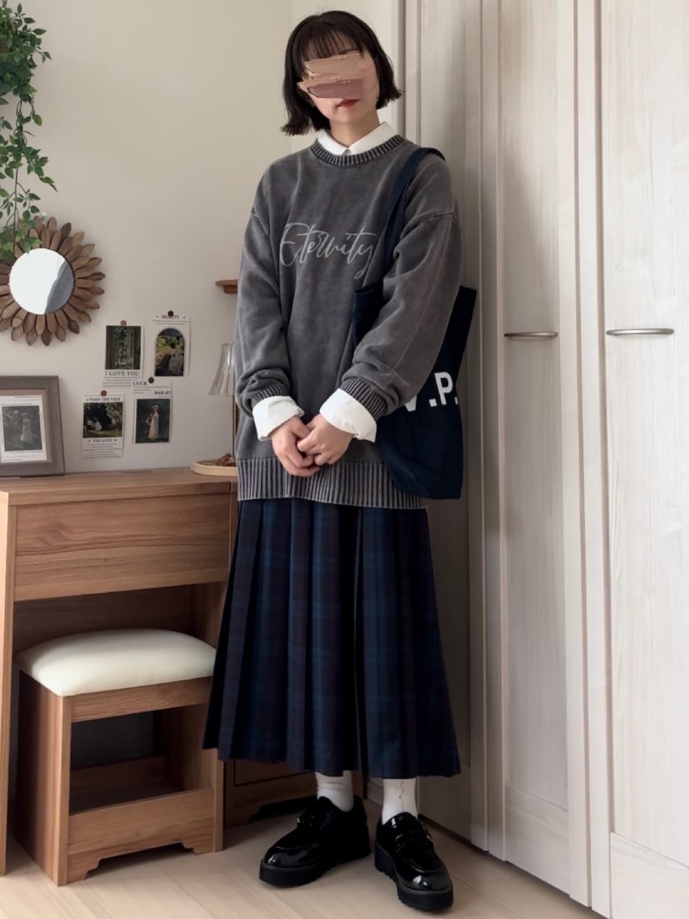𝚍𝚊𝚛𝚊.のニット/セーター「【2025AW新色登場】ストーンウォッシュロゴニットプルオーバー」を使ったコーディネート
