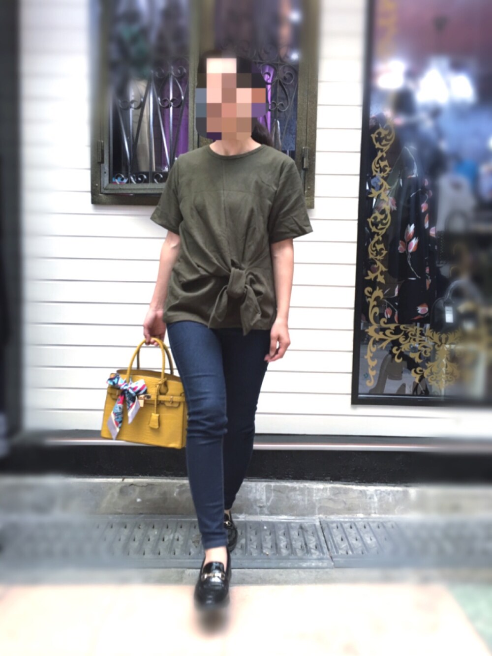とっても可愛いねじれTシャツ (正式名称が分からないw) パーソナルカラースプリングな人だから、 カーキは合わないって分かってても 好きだから無視して着てます🤣🤣 DHOLICのスキニーはカッコよく決まるけど 簡単に脱げなくていつも大変です💦
