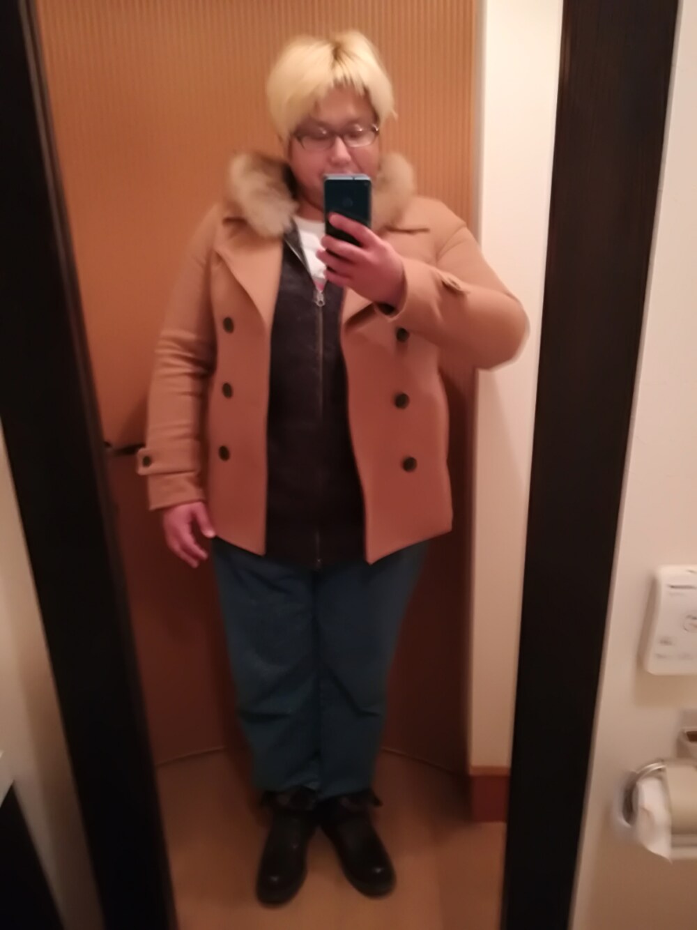 渡辺邦拡のピーコート「WEGO/ウールタッチPコート」を使ったコーディネート