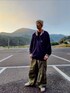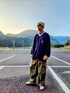 おはよーございます😊 ネイビーのニットにGUのカーゴパンツのコーデです✨ 朝日が眩しいぜ☀ 昼間は暑そうです💦