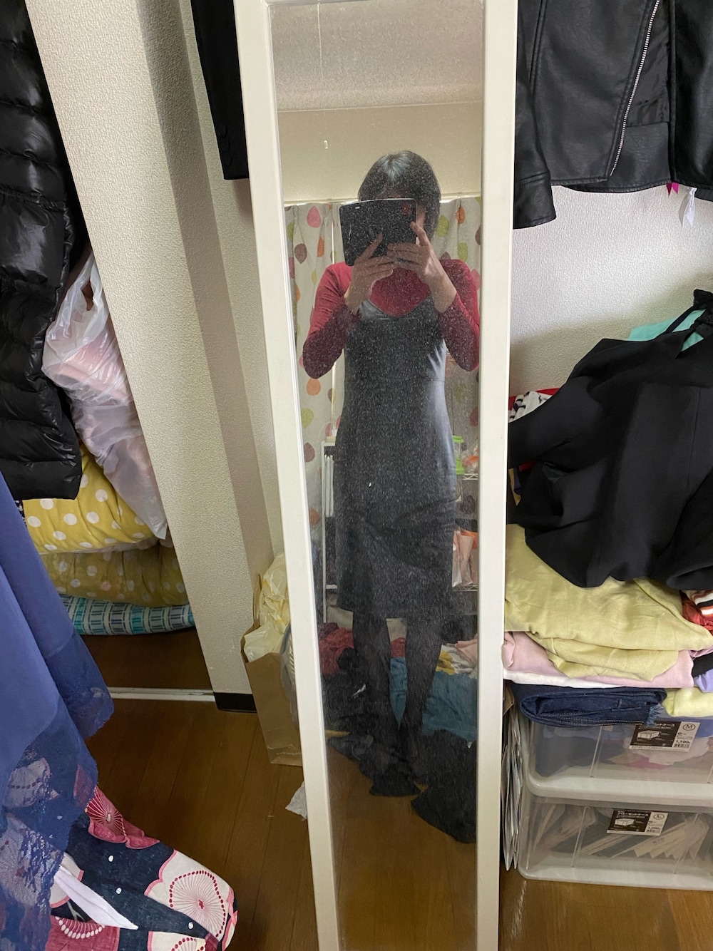 さっきの赤トップスにForever21のフェイクレザーキャミワンピース。こんなんもありかなぁ(´▽`*)アハハ ちなみに男です。わかってるとは思いますが(´▽`*)アハハ