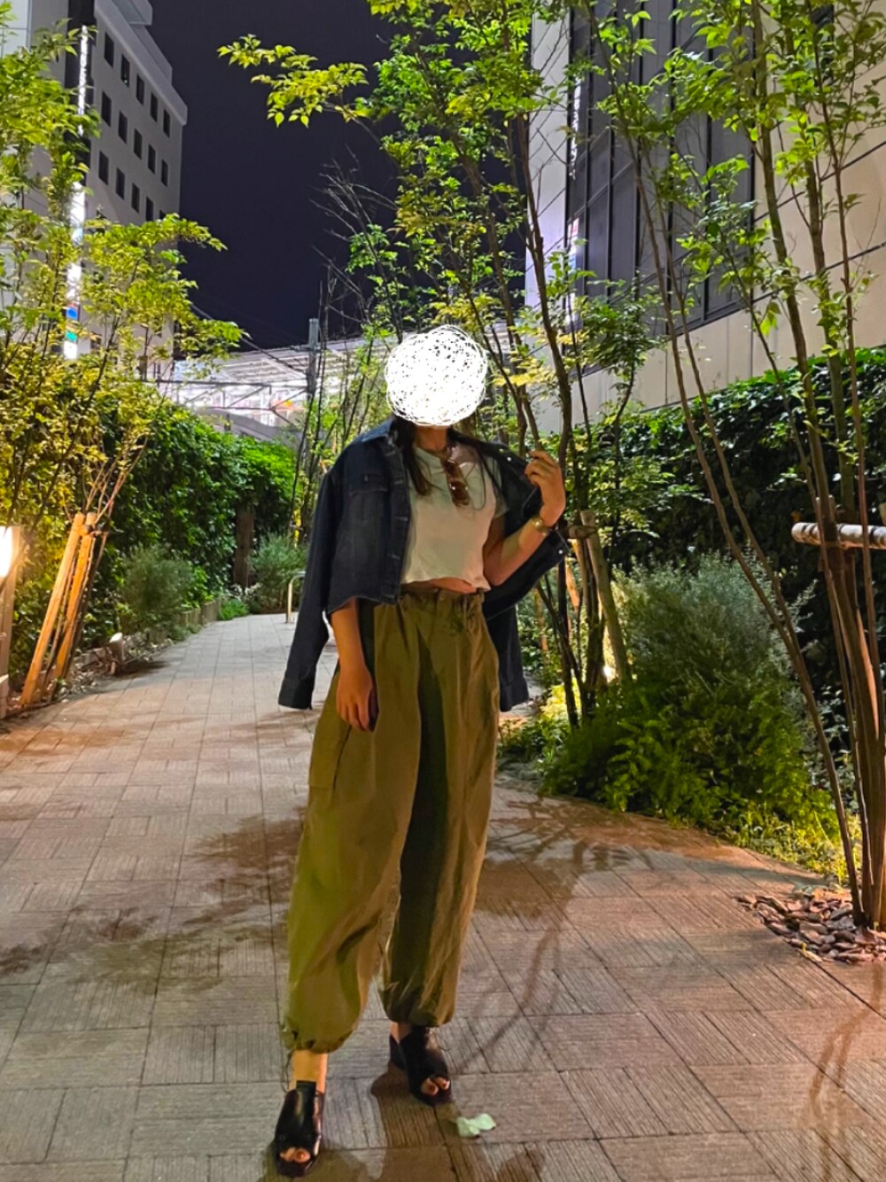 カーゴパンツが可愛すぎてよく履いてます! ハイウエストで足長効果抜群です🦵 友達のカメラセンスにも👏
