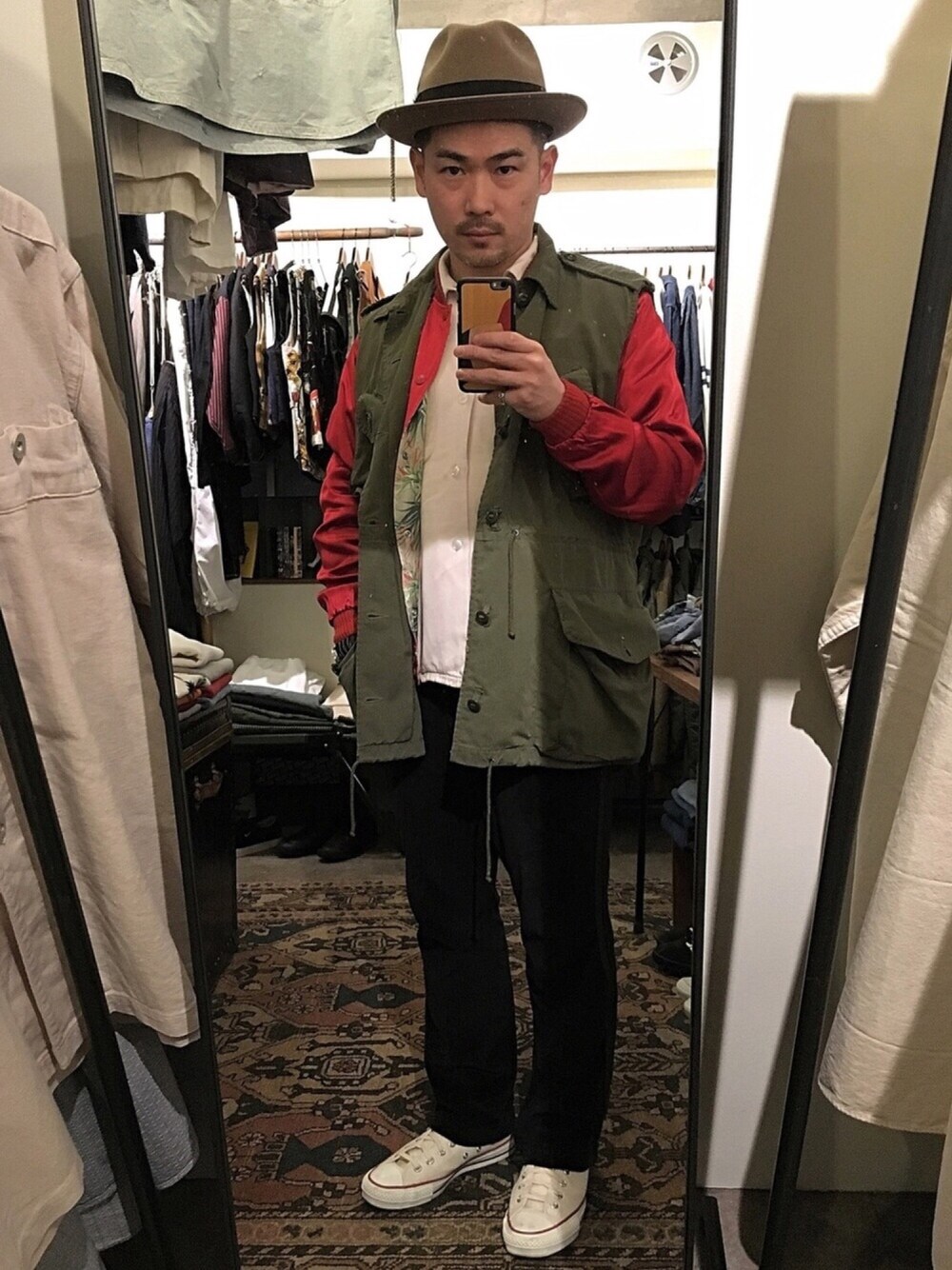 STETSONSTAMMBAUMカナダ軍NeedlesCONVERSEVINTAGEこの画像から似たアイテムを検索できます9,53850お気に入り (3)500達磨仁さんへのコメントNO COMMENTコメントはスマートフォン用アプリからご利用できます着用アイテムSTETSONSTETSONハット (ベージュ系)ハット探すZOZOTOWNで探すSTAMMBAUMSTAMMBAUMブルゾン (その他)ブルゾン探すZOZOTOWNで探すカナダ軍カナダ軍ベスト (グリーン系)ベスト探すZOZOTOWNで探すNeedlesNeedlesパンツ (ブラック系)パンツ探すZOZOTOWNで探すCONVERSECONVERSEスニーカー (ホワイト系)スニーカー探すZOZOTOWNで探すVINTAGEVINTAGEシャツ/ブラウス (ピンク系)シャツ/ブラウス探すZOZOTOWNで探す達磨仁のハットを使ったコーディネート大きめファティーグの袖をカットオフすると、 素晴らしいベストに♪ カナダ軍はポケット大きくて、いいアクセントに♫コメントを表示2017.3.18着用ブランドSTAMMBAUMNeedlesCONVERSEVINTAGEタグ#スカジャン#ミリタリー#カットオフ#リメイク#古着#古着MIX#ジャージ#レーヨンシャツ#ピンク#ラインパンツモデル情報男性・166cmショートヘアー似ているアイテムSTAMMBAUM × ブルゾンNeedles × パンツCONVERSE × スニーカーVINTAGE × シャツ/ブラウス達磨仁@daruma2695 / 166cm / MEN / ショートヘアー0コーディネート0フォロワー注目のコーディネートアプリでもっと見るもっと見る