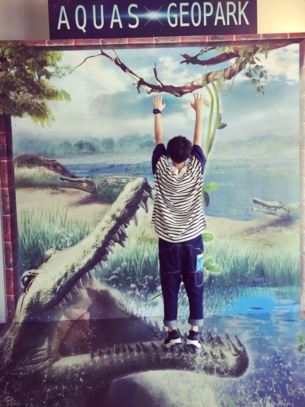 ワニに食べられそうな瞬間w もう少し背が高ければ枝にうまく手をかけれた感じになったのになぁ。