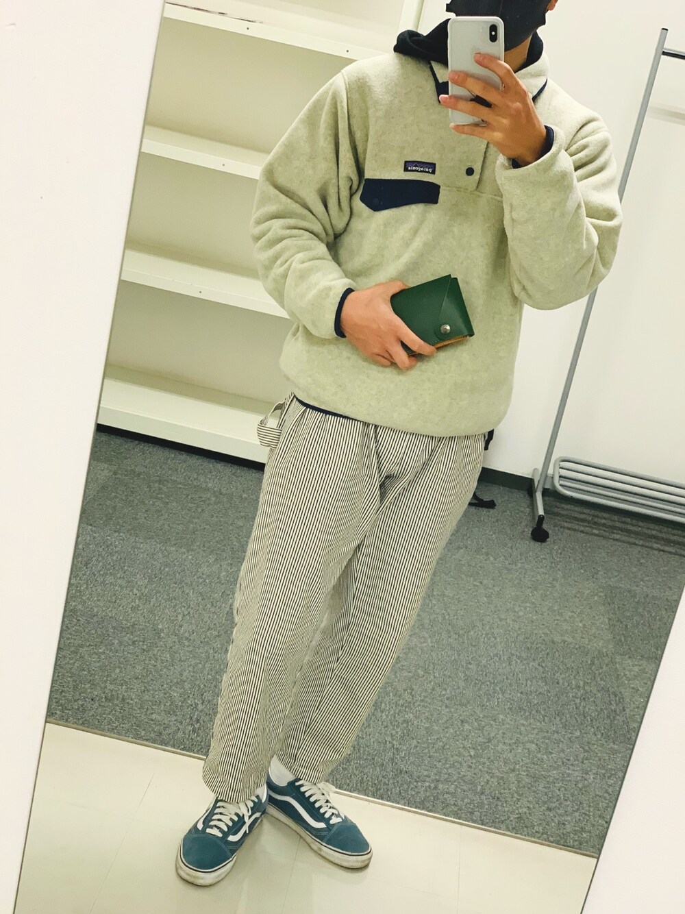 白と青の組み合わせが1番落ち着く😌 そしてついついシンチラ着すぎる。 手に持ってるサイフは手作りです🤘